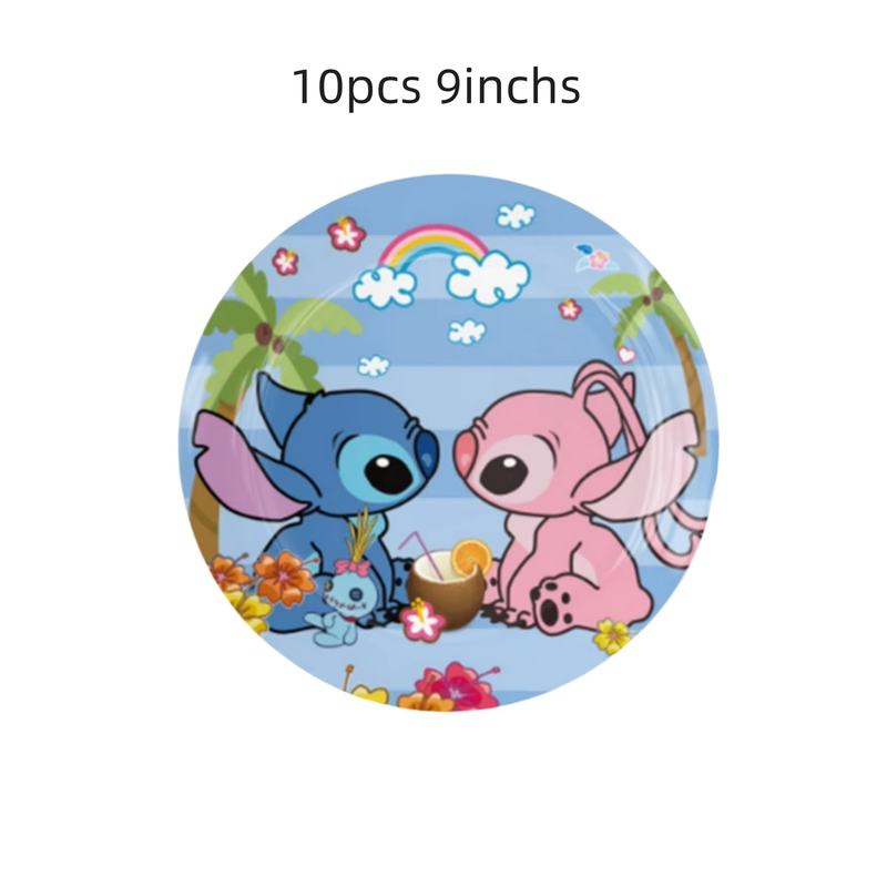1/10/20/52pcs Pink blue Cute Lilo Stitch& Angel Birthday Party Decoration Tableware Cups Plates Balloon Banner Gift Favors