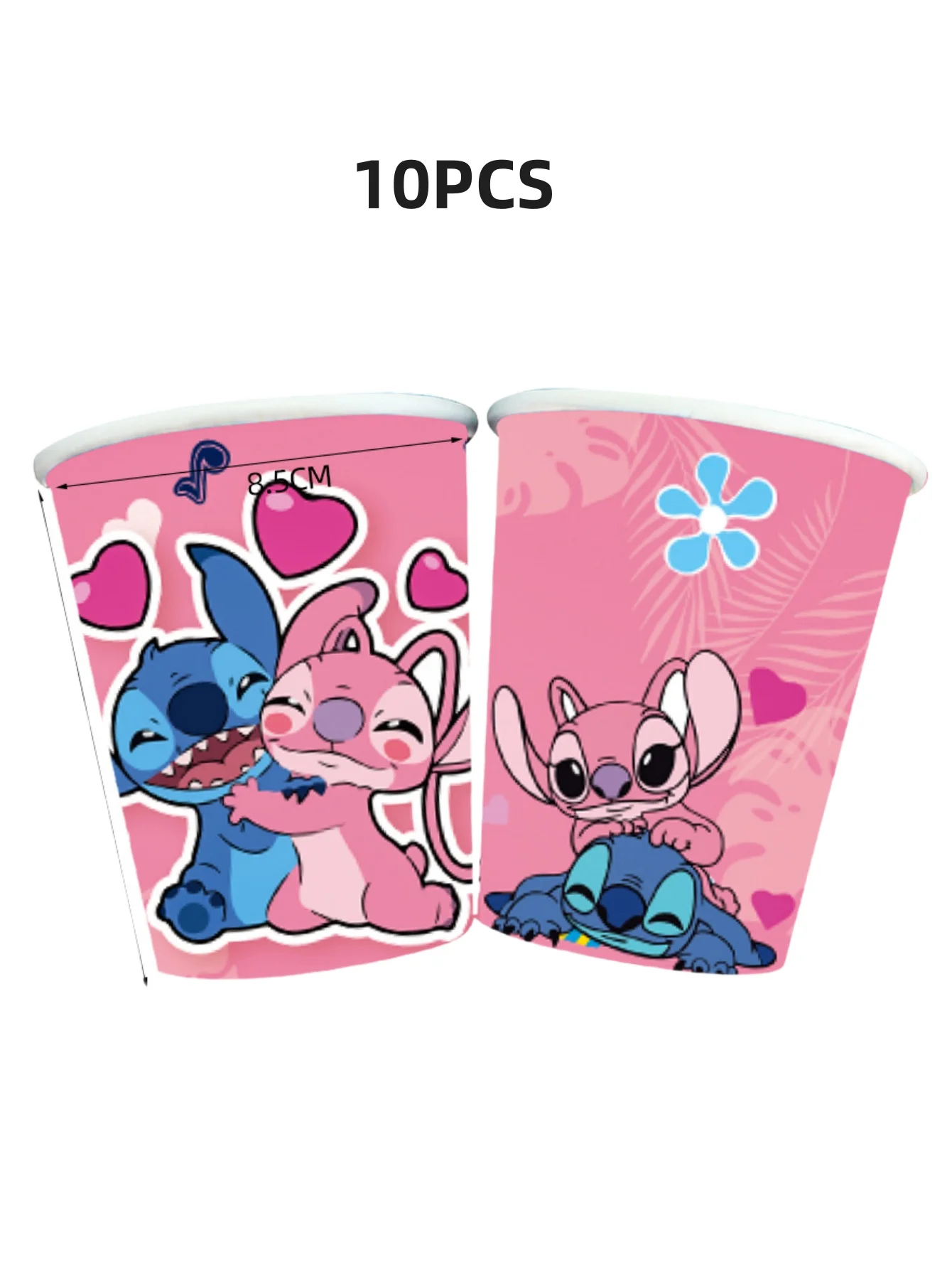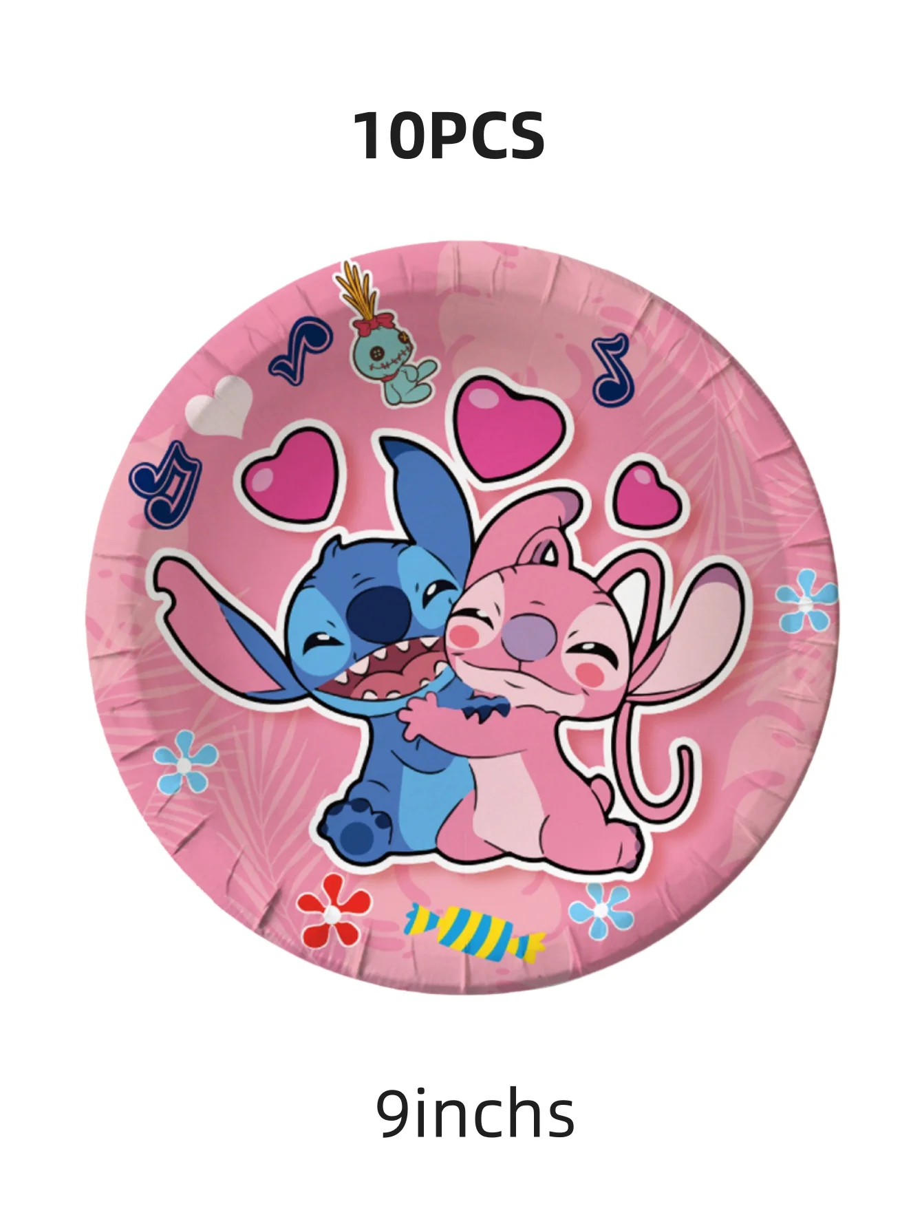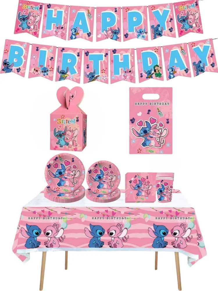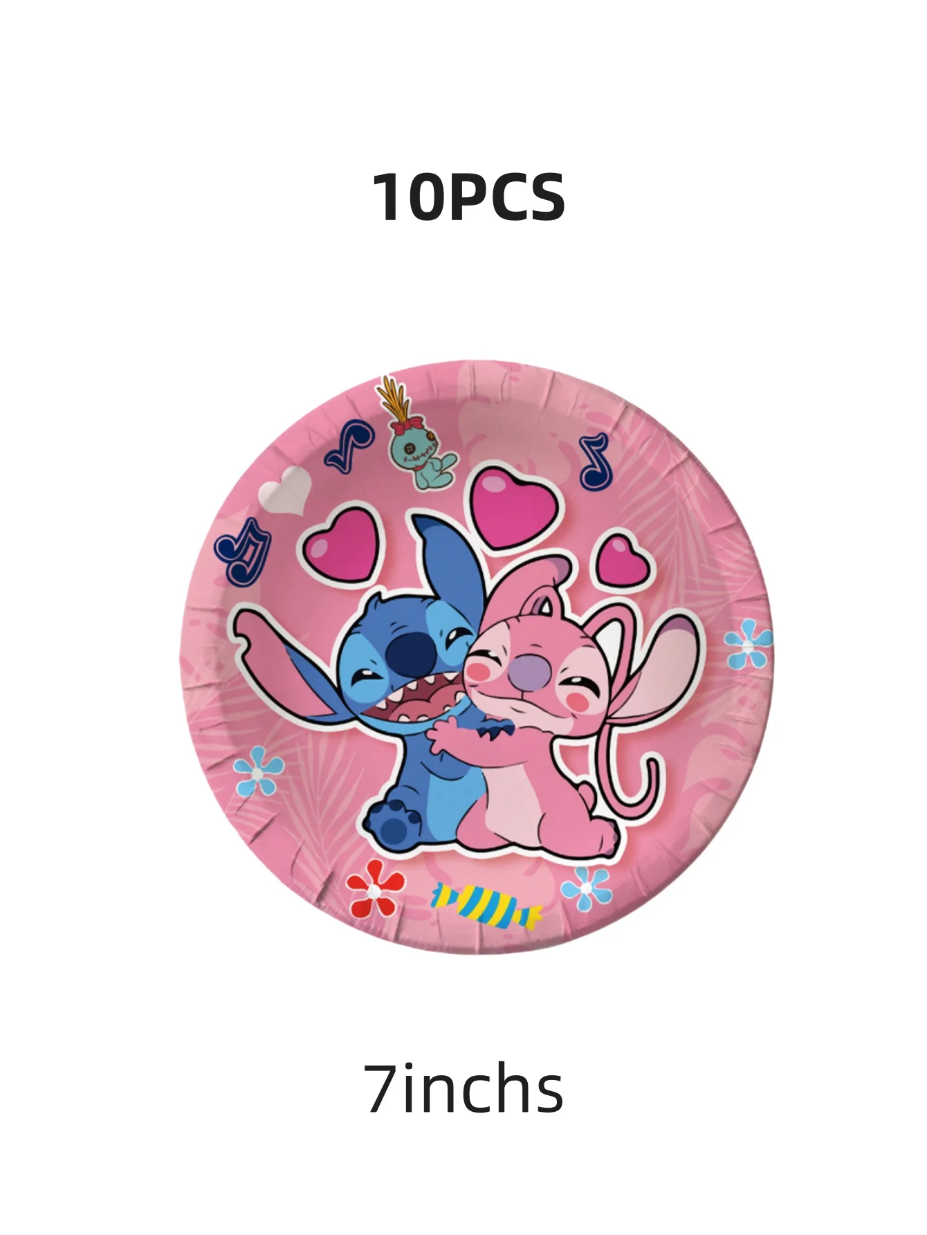 1/10/20/52pcs Pink blue Cute Lilo Stitch& Angel Birthday Party Decoration Tableware Cups Plates Balloon Banner Gift Favors
