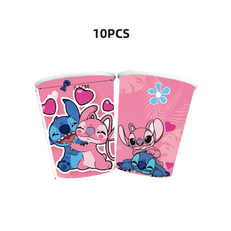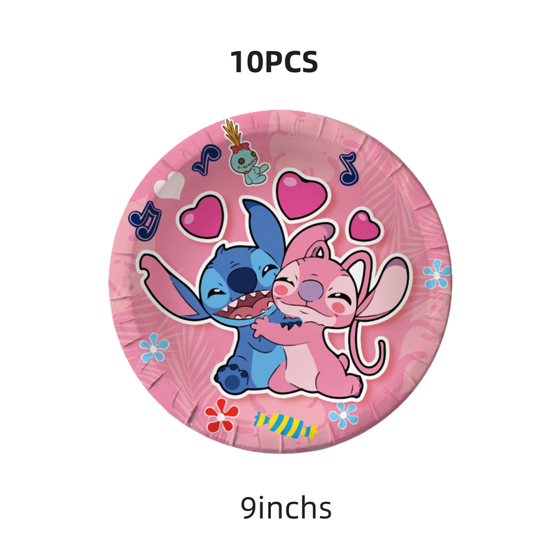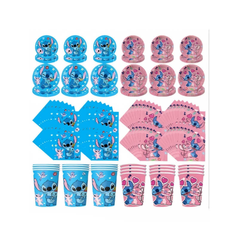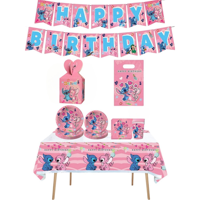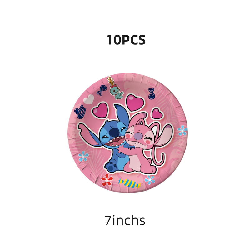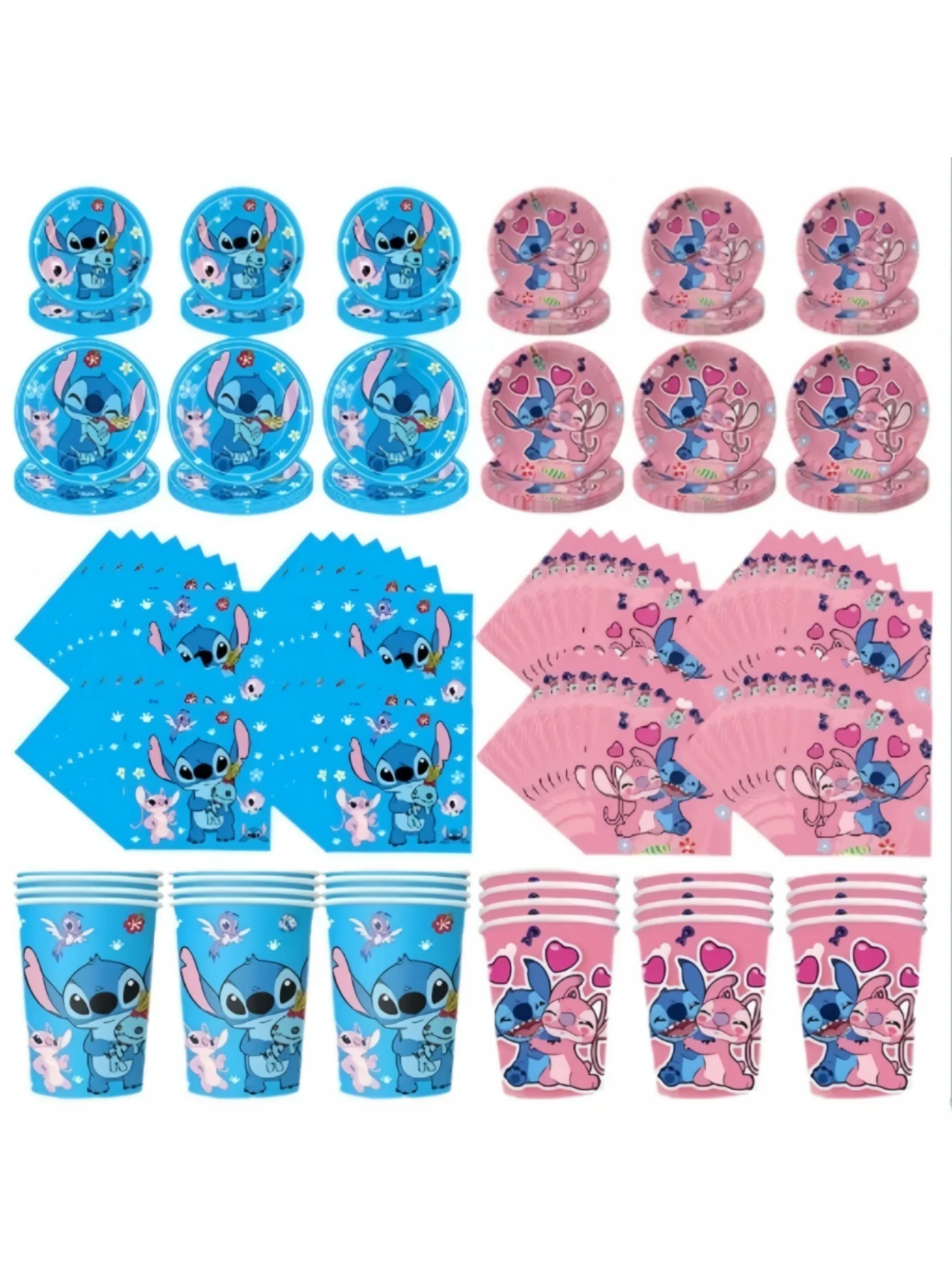 1/10/20/52pcs Pink blue Cute Lilo Stitch& Angel Birthday Party Decoration Tableware Cups Plates Balloon Banner Gift Favors