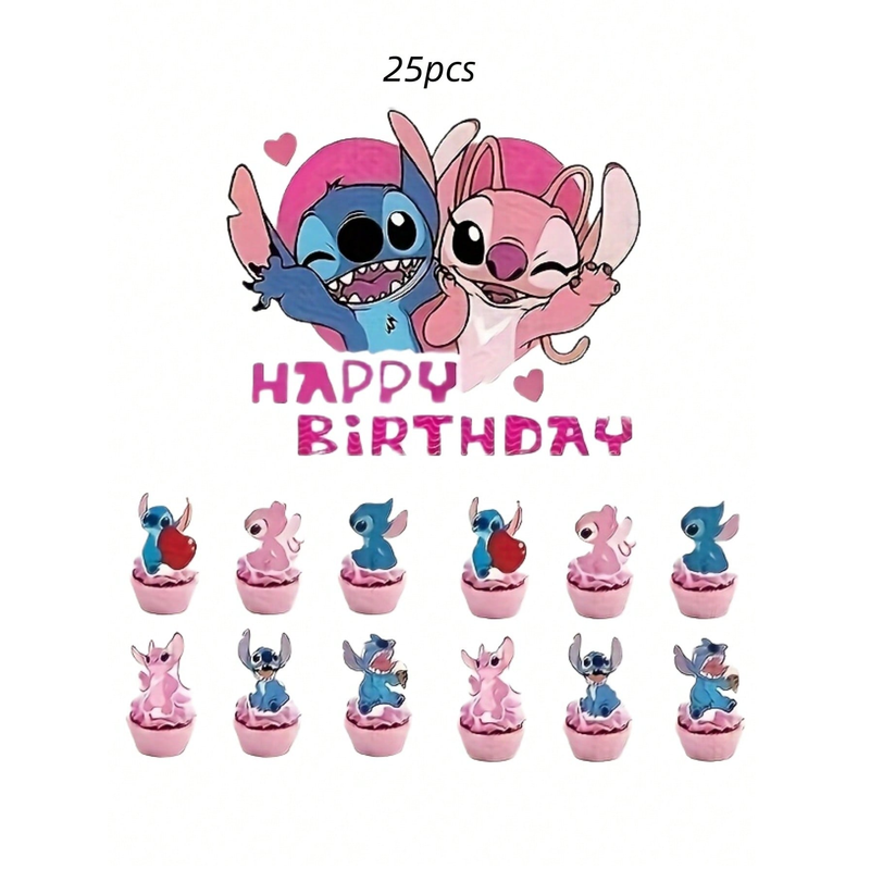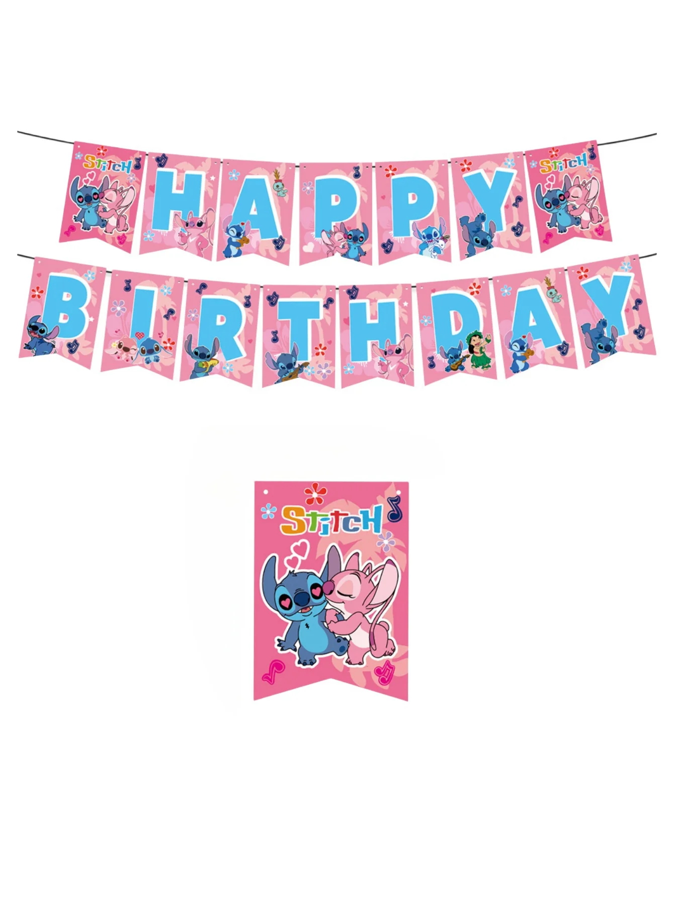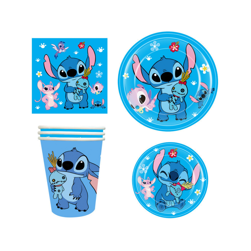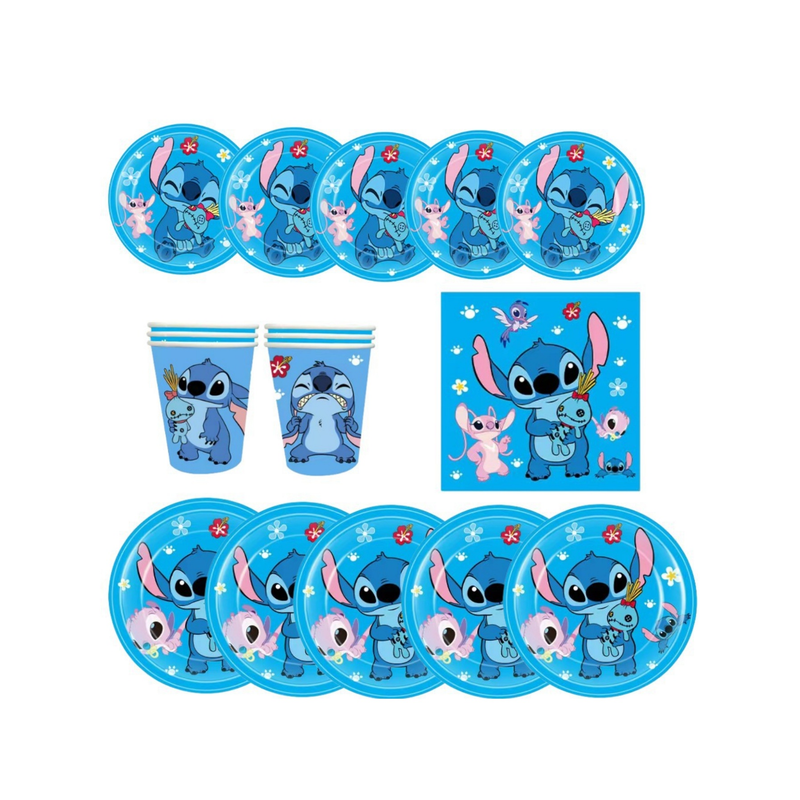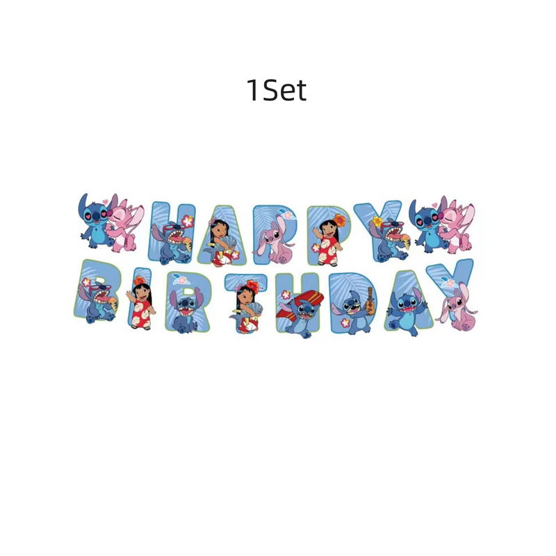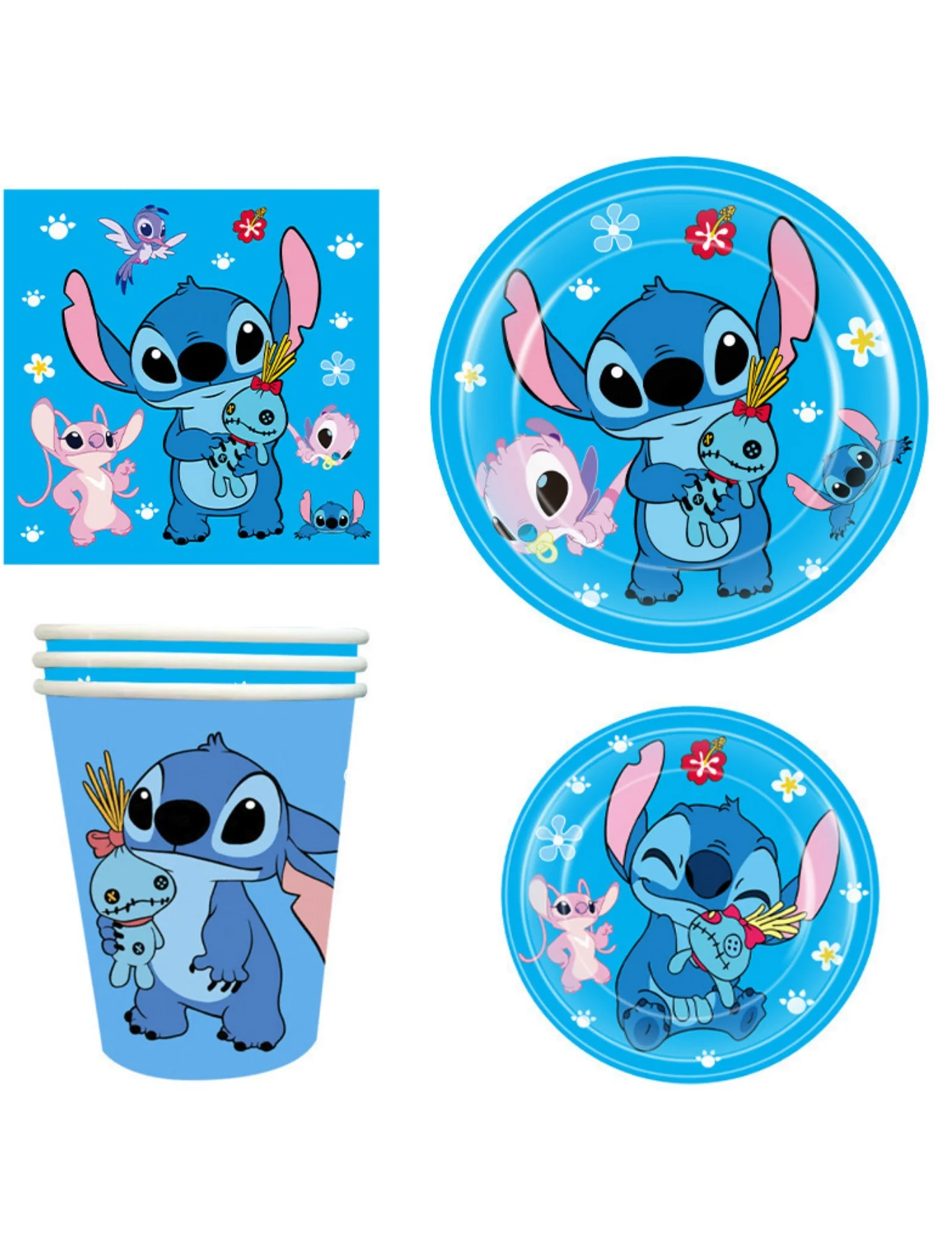 1/10/20/52pcs Pink blue Cute Lilo Stitch& Angel Birthday Party Decoration Tableware Cups Plates Balloon Banner Gift Favors