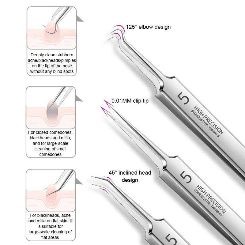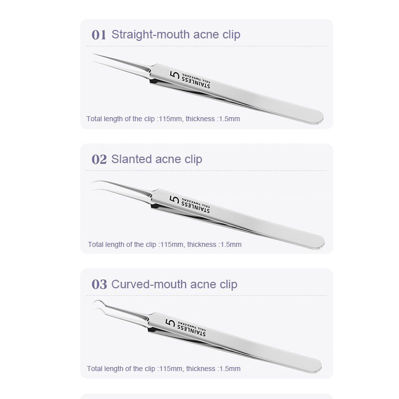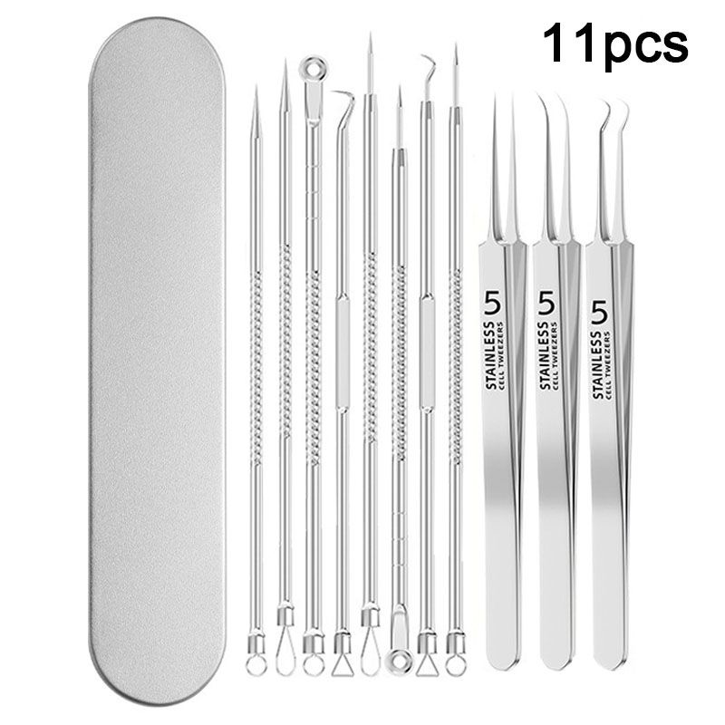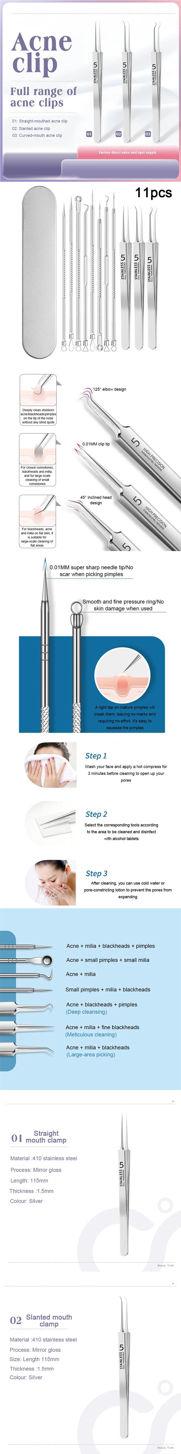 1/11Pcs Acne Pimples Blackhead Remover Blackhead Extractor Clip Ultra-fine Tweezers Acne Needle Facial Cleaner Skin FCZ01