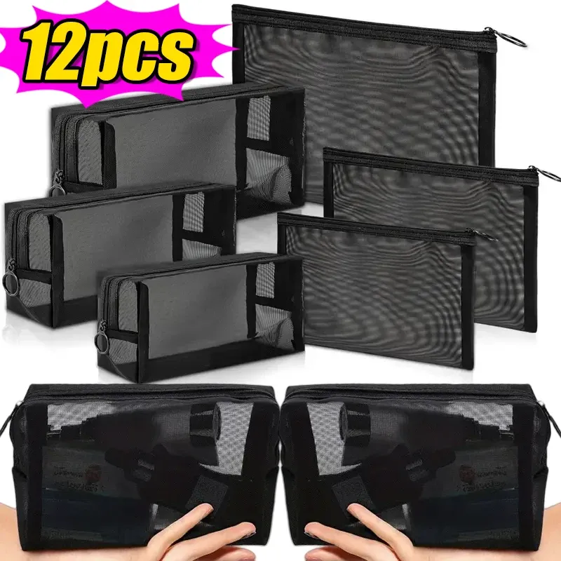 1/12pcs Mesh Clear Cosmetic Bags Small Large Black Makeup Bag Portable Travel Toiletry Organizer Case Lipstick Storage Pouch