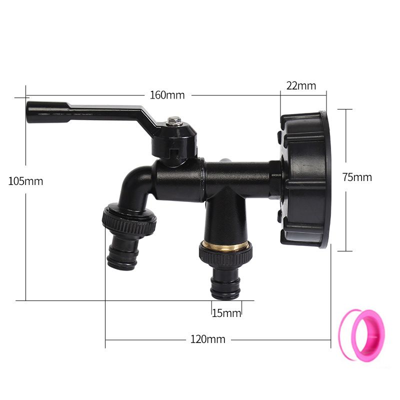 1/2''*3/4''Metal alloy dual outlet one in two out garden washing machine faucet, equipped with IBC water tank connection cover