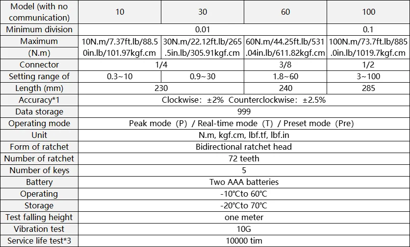 4 The buzzer and the LED indicator are triggered when reaching a preset torque value (peak-limited mode).