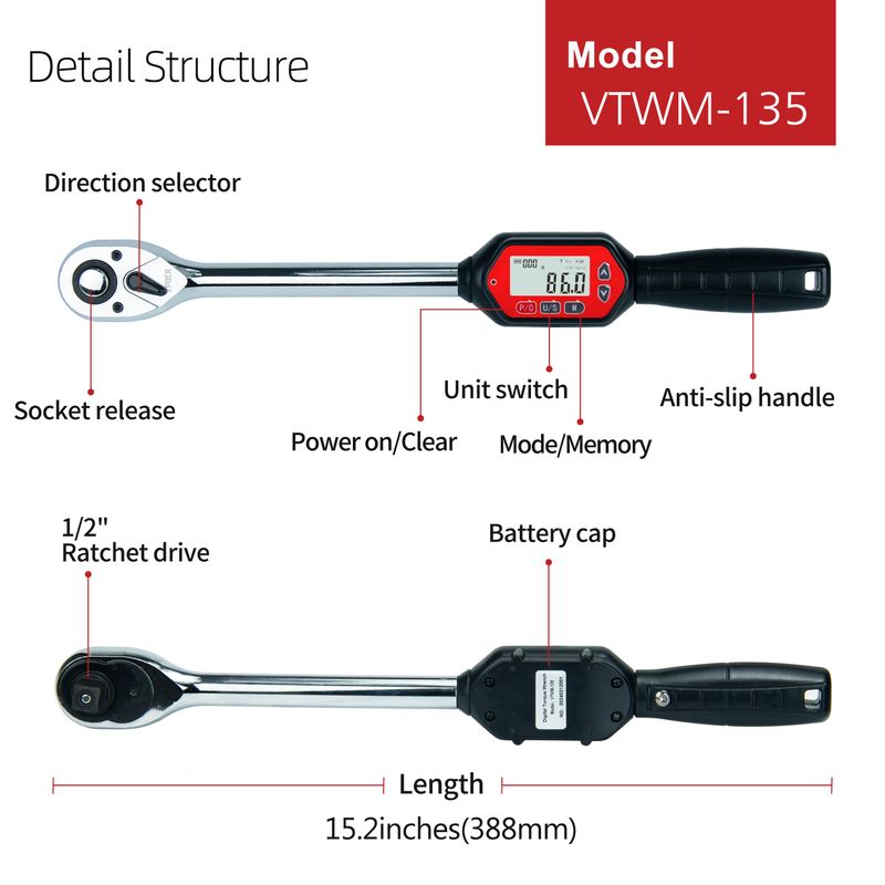 VTWM-135 Digital Torque Wrench measuring range for each unit: