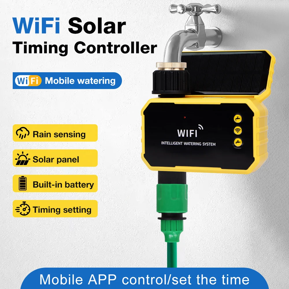 1/2 Outlets Watering Timer Smart WiFi Irrigation Timing Controller Solar Charging Digital Sprinkler Timer Water Valve Controller