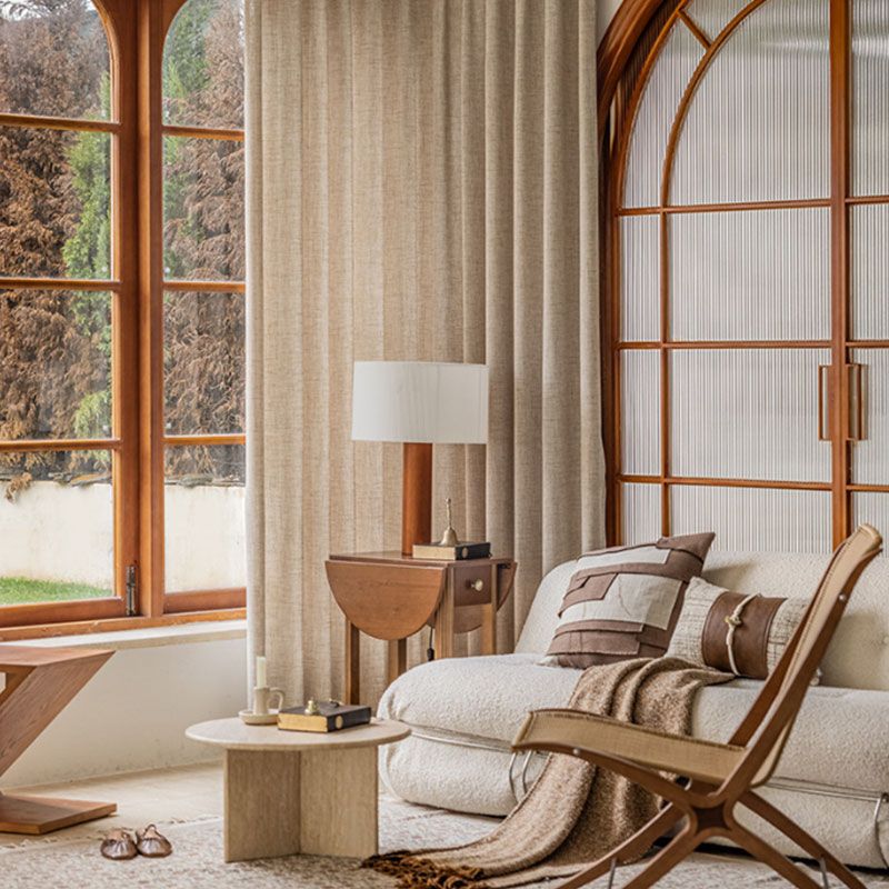 1/2 panel Japanese style linen semi transparent gauze curtain Rainbow linen yarn Cotton linen texture balcony bedroom curtain