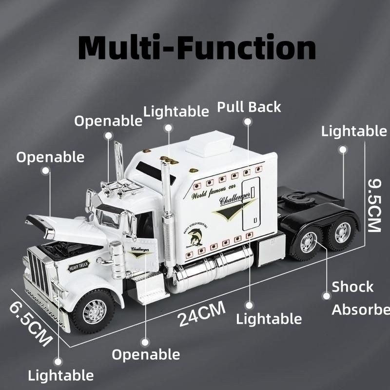 1/24 Trailer American Tow Truck Head Tractor Diecast Alloy Miniature Toy Car Model Pull Back Sound Light Collection Gift For Boy