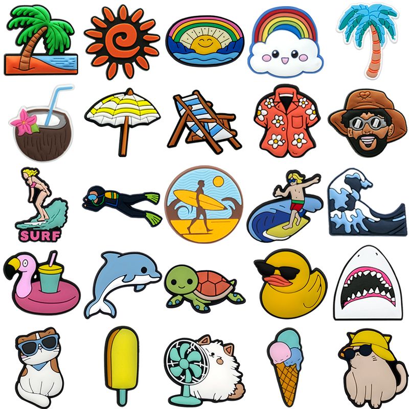 1/25PCS Beach Leisure Style Shoe Charms for Women Men Vacation Style Cats Surf Coconut Tree Shoe Accessories Pins Clog Buckle