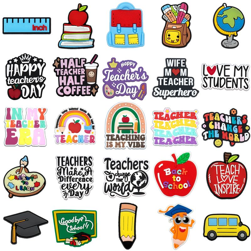 1/25PCS Teacher's Day Series Shoe Charms Ruler Apple Pencil Globe Shoe Decorations for Clog Pins Accessories fit Holiday Gifts