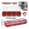 Red/binary color-coded compartments facilitate quick identification and organization of screws, enhancing efficiency.