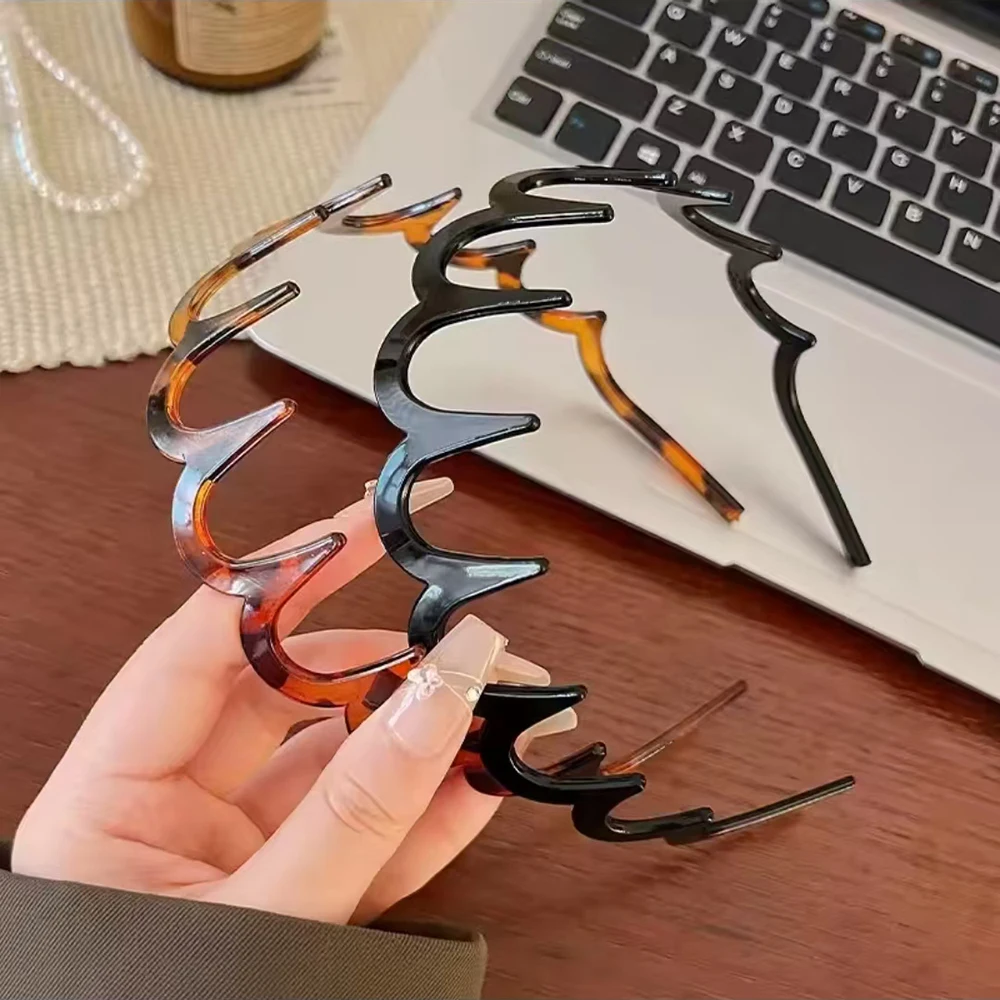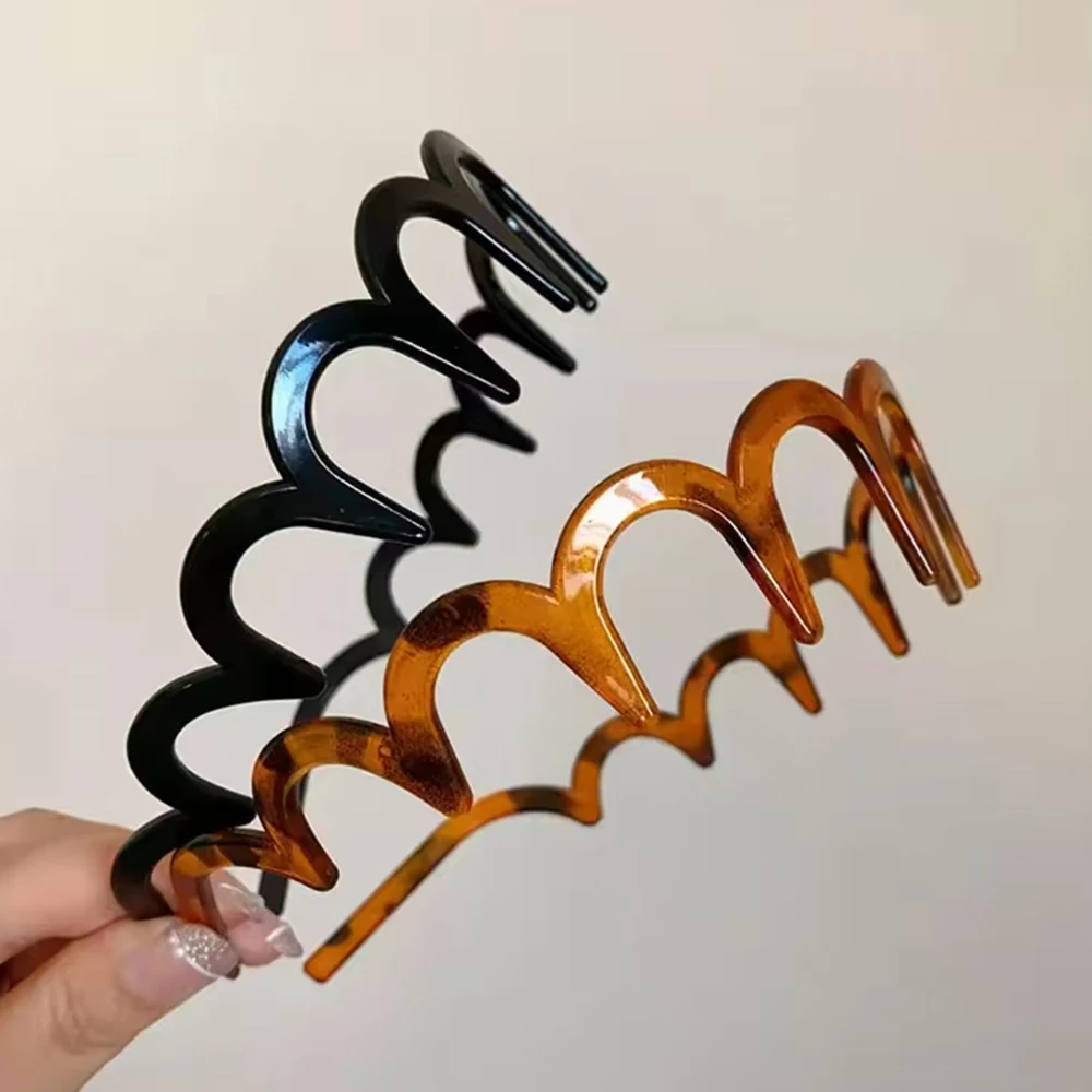 1/2pcs Korean Style Brown Resin Hairband with Wave Toothed Design High Skull Top Hair Comb Non Slip Hair Accessories for Girls