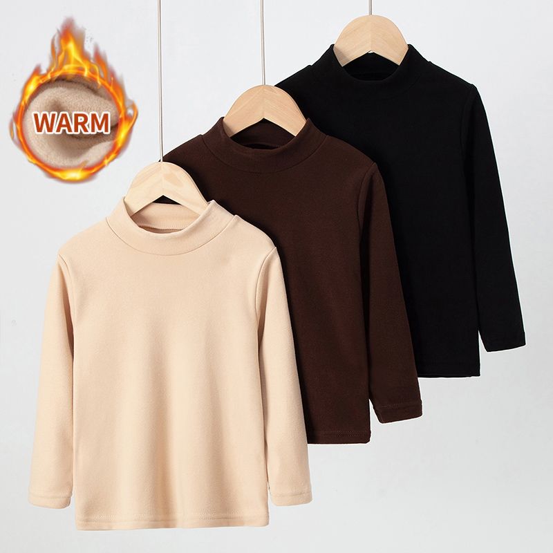 1/3/4 Pcs Children's Mid-collar Bottoming Shirt in Autumn And Winter Solid Color Joker Girls' Long sleeve T-shirt Boys' Casual S