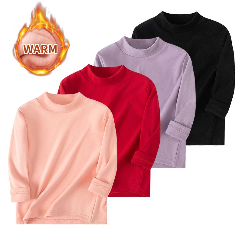 1/3/4 Pcs Children's Mid-collar Bottoming Shirt in Autumn And Winter Solid Color Joker Girls' Long sleeve T-shirt Boys' Casual S