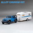 1/36 Scale Land Rover JEEP Wrangler F150 RV Trailer Truck Model Car Toy Alloy Diecast Doors Opened Caravan Set Models for Kids