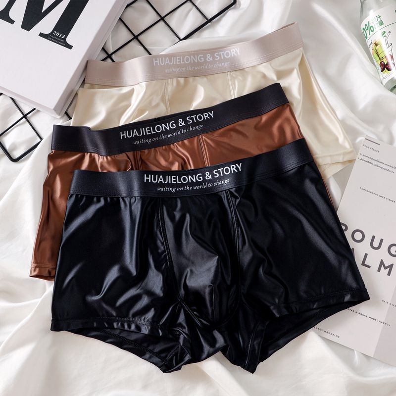 3PCS/Pack Luxury Ice Silk Satin-like Boxers Summer Smooth Cool Solid Men's Underpants Breathable Mesh Crotch Panties Underwear
