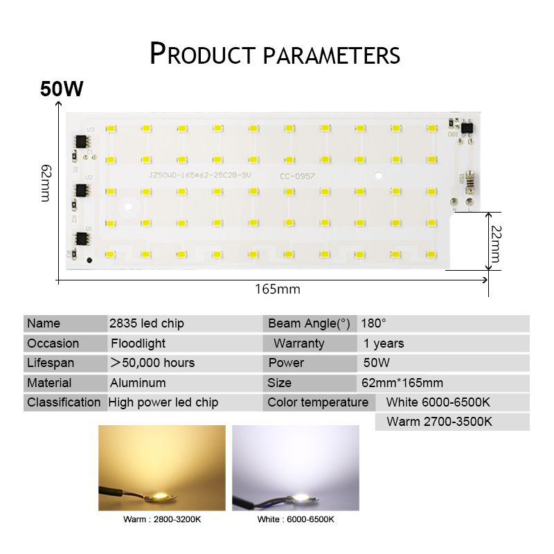 1/3PCS Led Chip 50W Smart IC Floodlight Golw Light Full Spectrum SMD 2835 220V Long Service Time DIY LED Bulb Lamp Spotlight