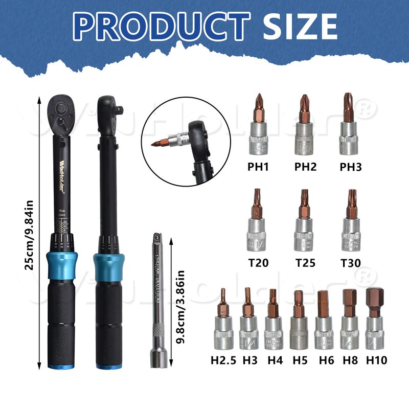 【Precision Calibration】Calibrated for accuracy, this 1/4 inch torque wrench has a range of 2-24N.m with +/-3% accuracy, ensuring your high-performance components last longer.