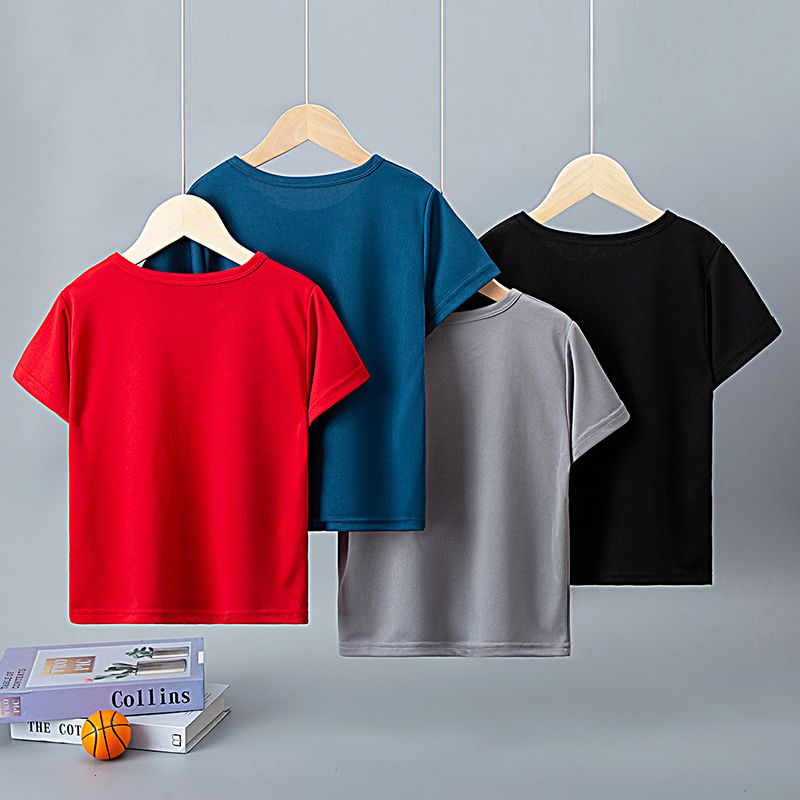 1/4 Pack Children's Summer Quick-drying Sports Short Sleeve Solid Color Joker Casual Plus Size Shirt Boys And Girls Running T-sh
