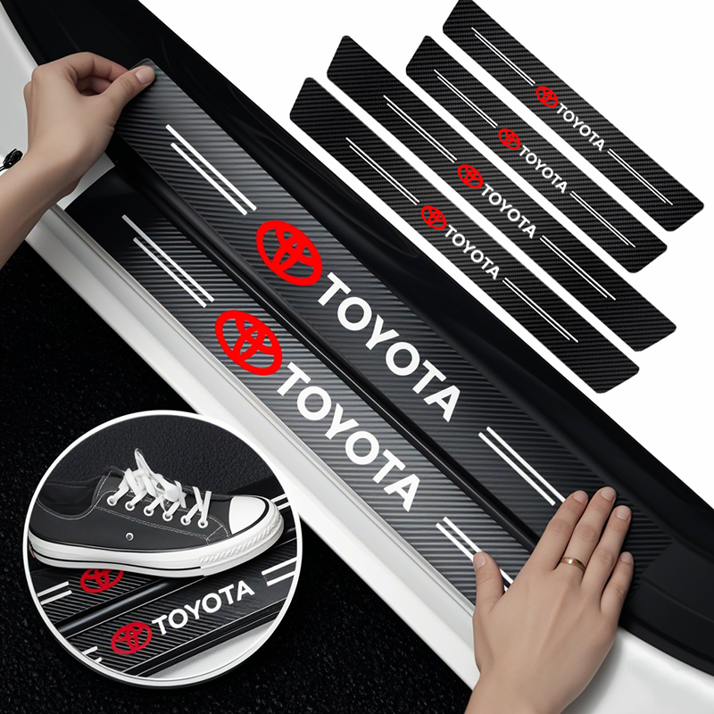 1/4/5Pcs Car Door Sill Scuff Plate Decor Carbon Fiber Stickers For Toyota GR Corolla Yaris Aygo Prius RAV4 Crown CHR Camry Auris
