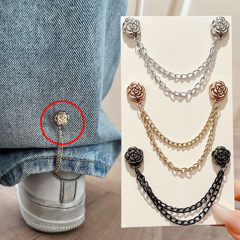 1/4pcs Sliver Magnetic Adjustable Trouser Legs Clips For Pants Pin Retractable Fixed Leg Pants Loose Button For Jeans Cardigan