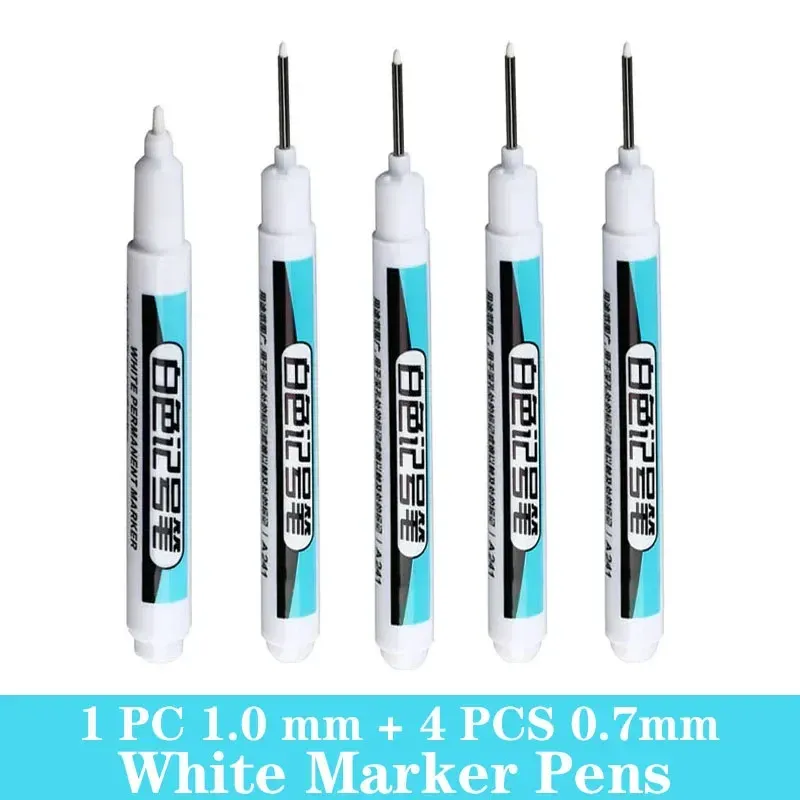 1/5 PCS White Marker Pens Oily Waterproof White Graffiti Sketching Markers Stationery Deep Hole Marker White Permanent Paint