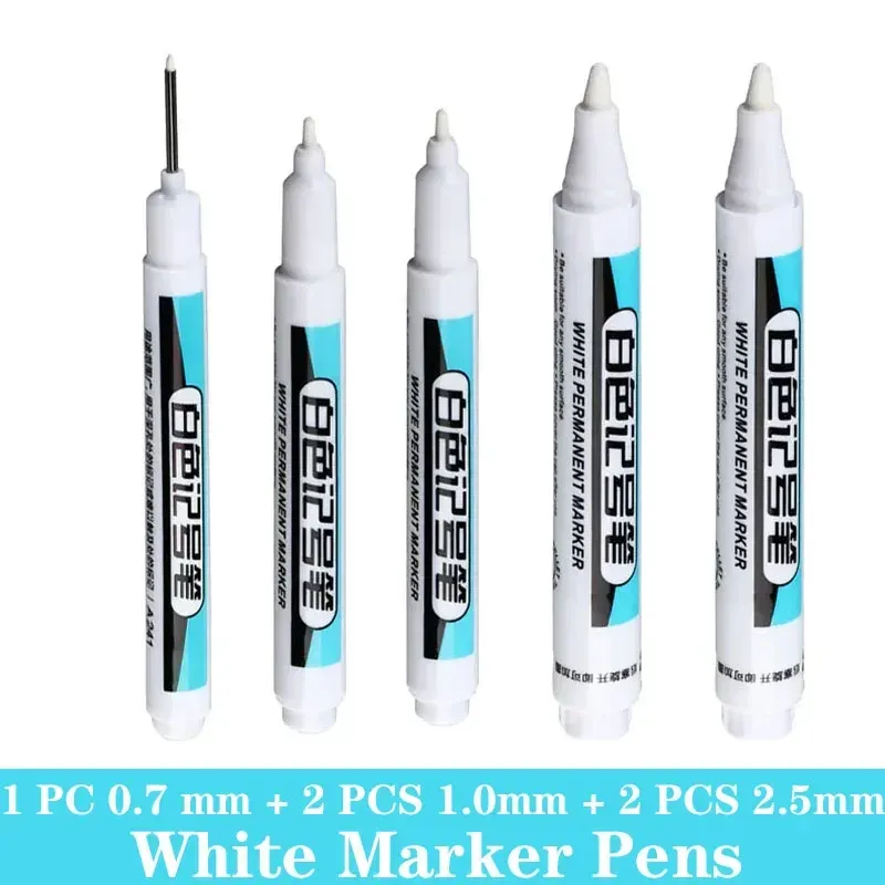 1/5 PCS White Marker Pens Oily Waterproof White Graffiti Sketching Markers Stationery Deep Hole Marker White Permanent Paint
