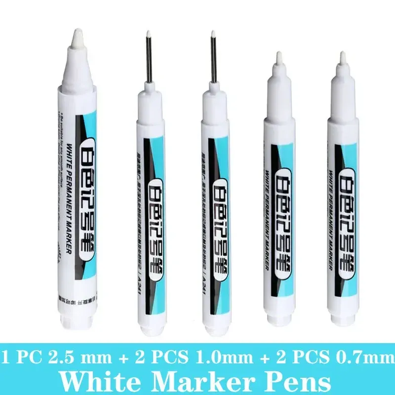 1/5 PCS White Marker Pens Oily Waterproof White Graffiti Sketching Markers Stationery Deep Hole Marker White Permanent Paint