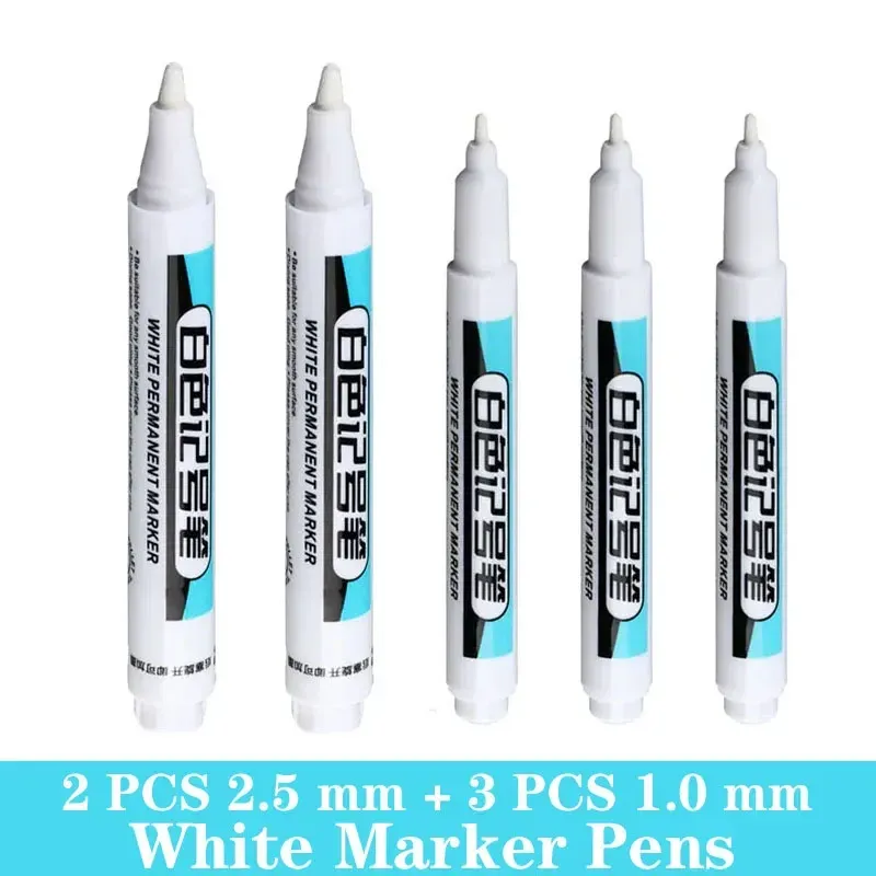 1/5 PCS White Marker Pens Oily Waterproof White Graffiti Sketching Markers Stationery Deep Hole Marker White Permanent Paint