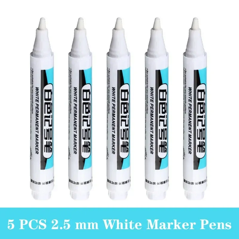 1/5 PCS White Marker Pens Oily Waterproof White Graffiti Sketching Markers Stationery Deep Hole Marker White Permanent Paint