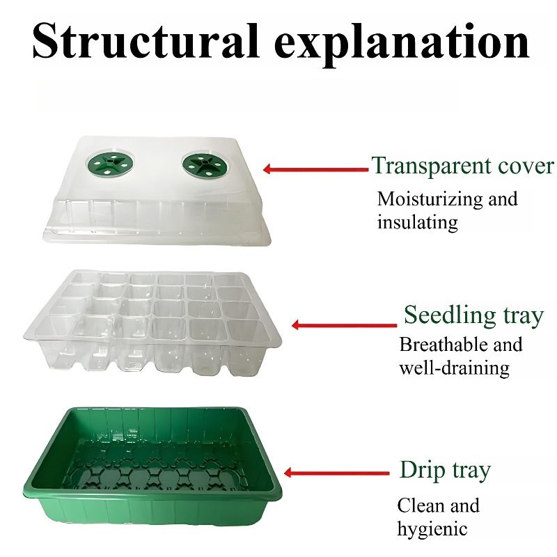 1/5-Piece Seedling Tray Kit - 24 Cell Greenhouse Starter with Humidity Dome & Base, Green Plastic Propagation Trays