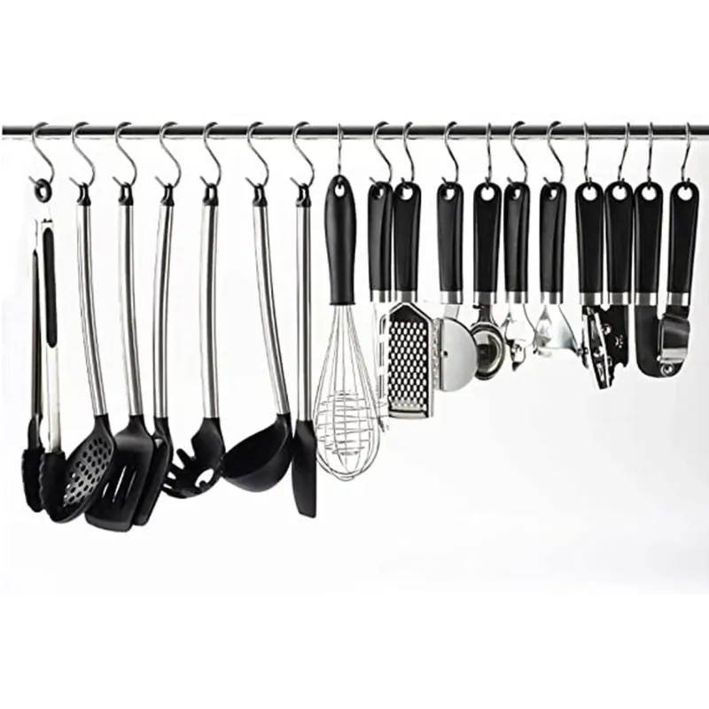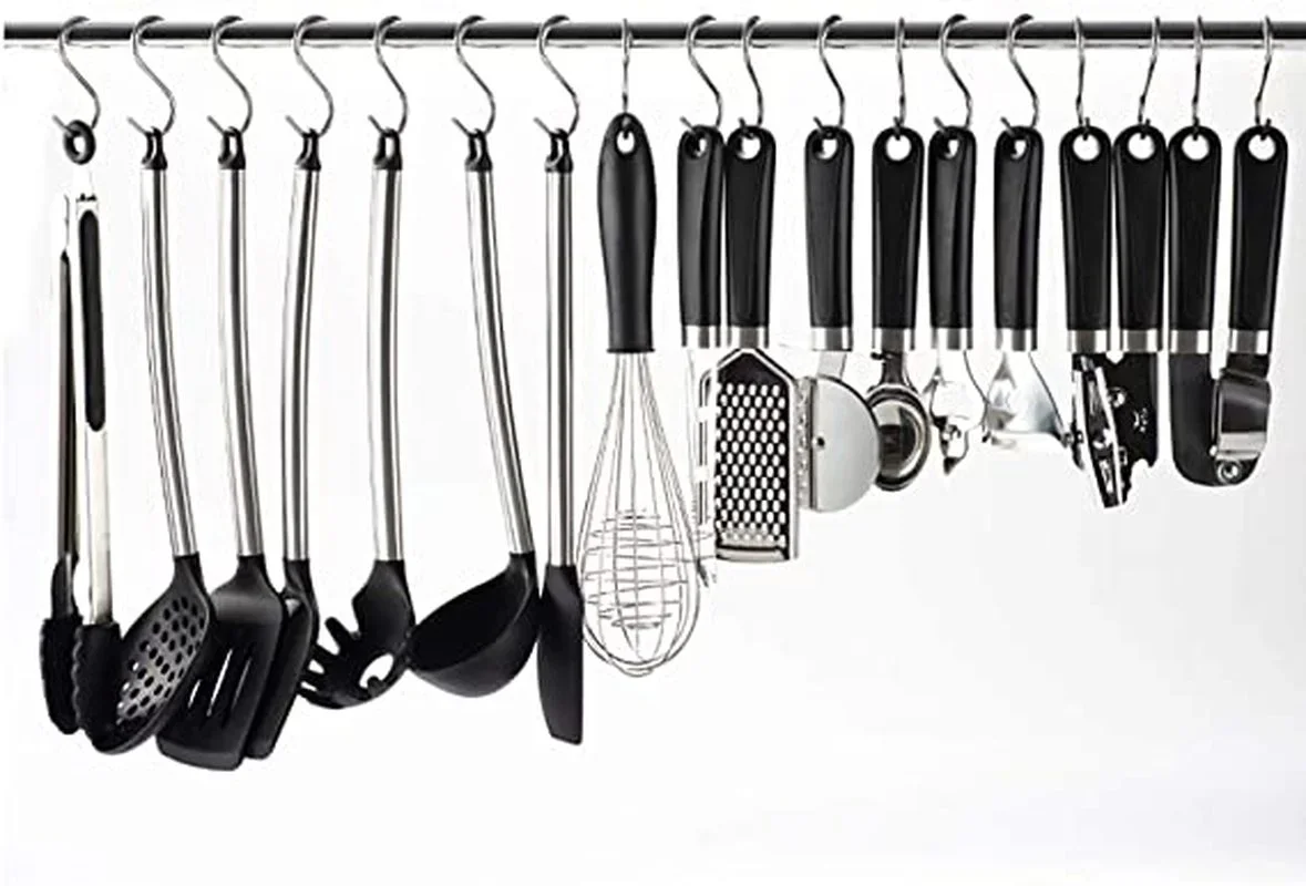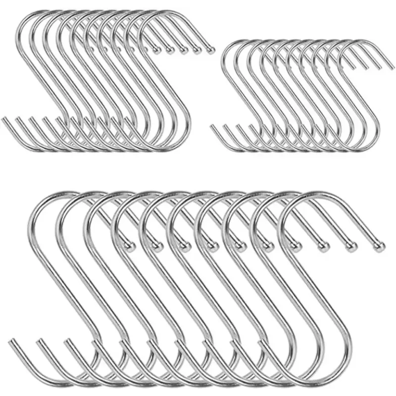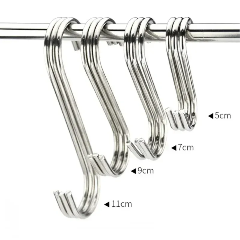 Multipurpose S Hooks: Our Heavy Duty S Hooks are very practical and portable, which widely applied in kitchen (as kitchen hooks), closet, bathroom, storage room, workshop, office, and garage.Our hanging hooks can be used both indoor and S hooks for hanging plants outdoor and for a number of things: use them in the kitchen for hanging utensils, utensils, or even coffee mugs. S hooks are widely used in hanging clothes. Designed these metal hooks for hanging plants outdoors ~Household Necessity