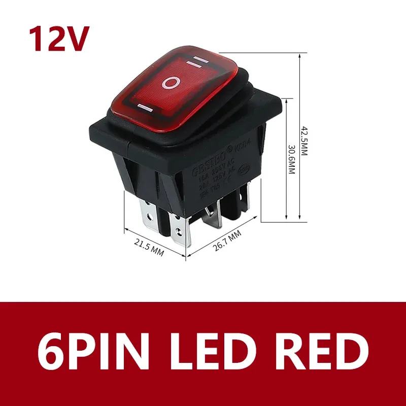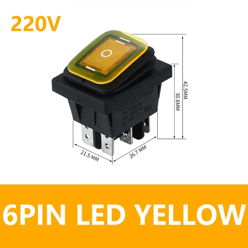 1/5/20PCS 3 Position 6 Pins KCD4 Waterproof Switch ON-OFF-ON Rocker Switch 12V Power Switch self-Locking 16A 250VAC 20A125VAC