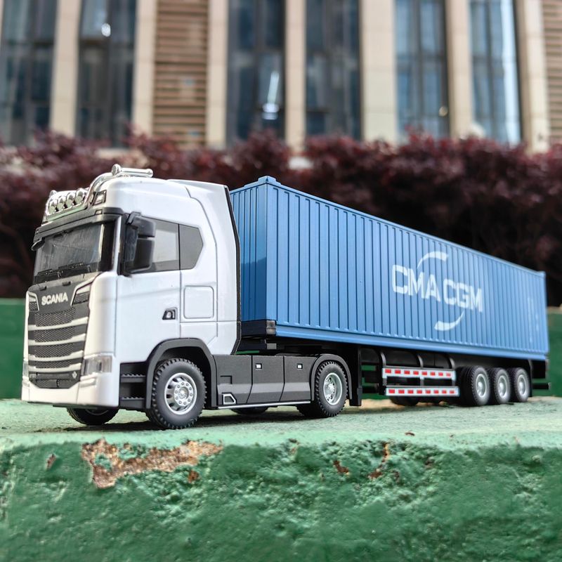 1/50 Simulation Large Truck Toy Car Model Alloy Diecast Transport Container Vehicle Car For Boy Gifts with Sound Light Pull Back