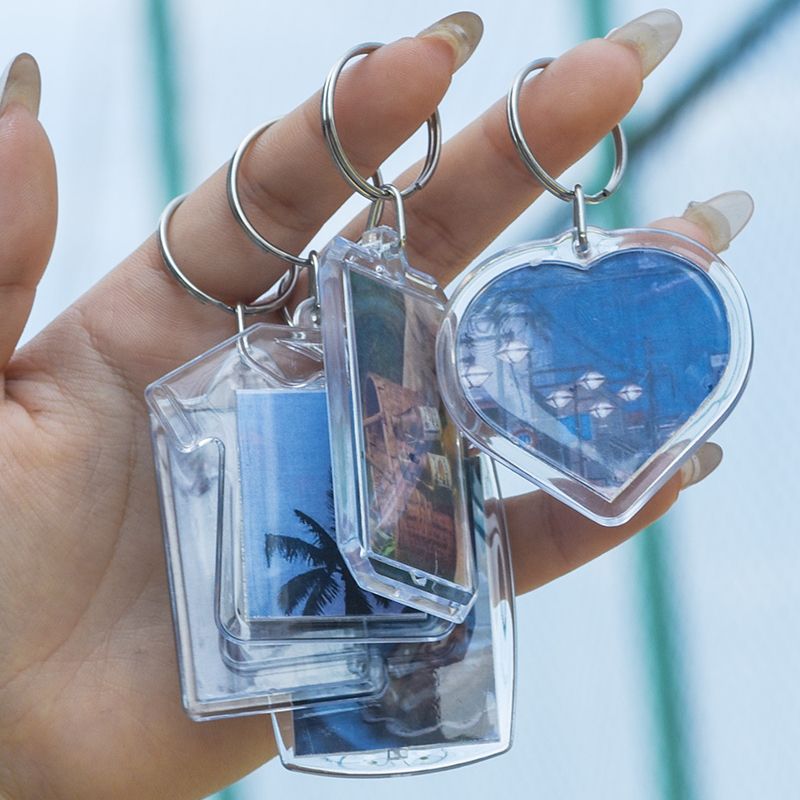 Features: photos, advertising and other thin film can be placed inside the keychain