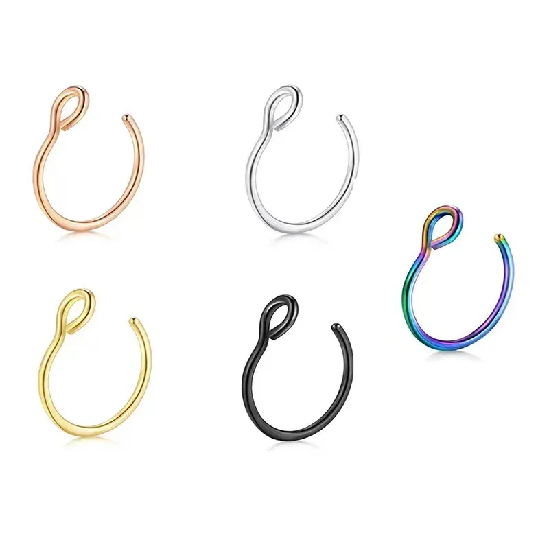 1/5pcs/set U Shape Nose Clip Fake Ring Septum No Piercing Lip Rings 3 Colors Stainless Steel Horseshoe Women Body Jewelry Gift