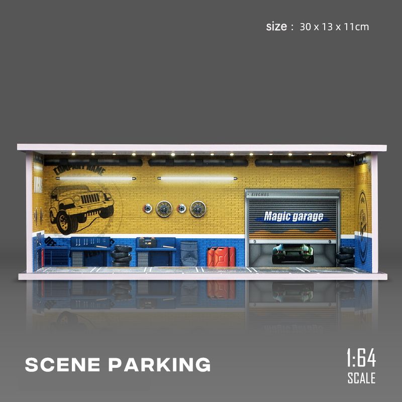 1/64 Garage scene Model Scene with Light Version Simulation Model Scene Decoration Collect (Excluding dolls and car models)