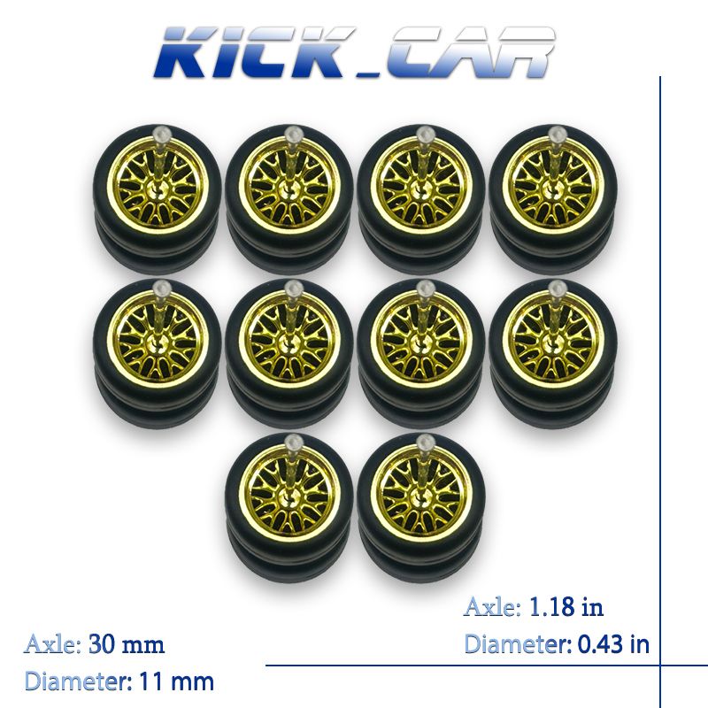 1/64 Wheels with Fixed Rubber Tires Branches Spoke for Toy Model Diecast Cars Refiting Parts for Hotwheels (5 sets for 5 Cars)