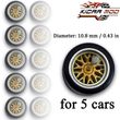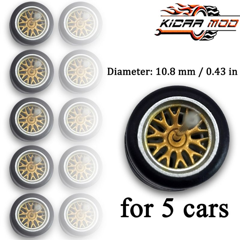 1/64 Wheels with Fixed Rubber Tires Branches Spoke for Toy Model Diecast Cars Refiting Parts for Hotwheels (5 sets for 5 Cars)