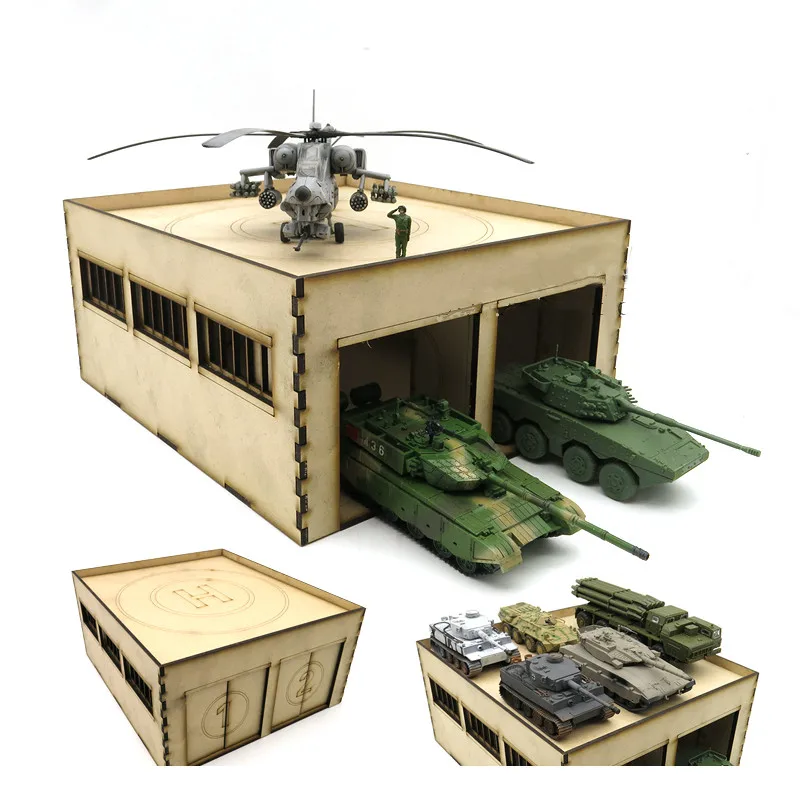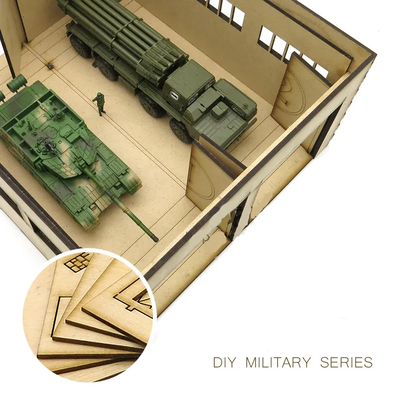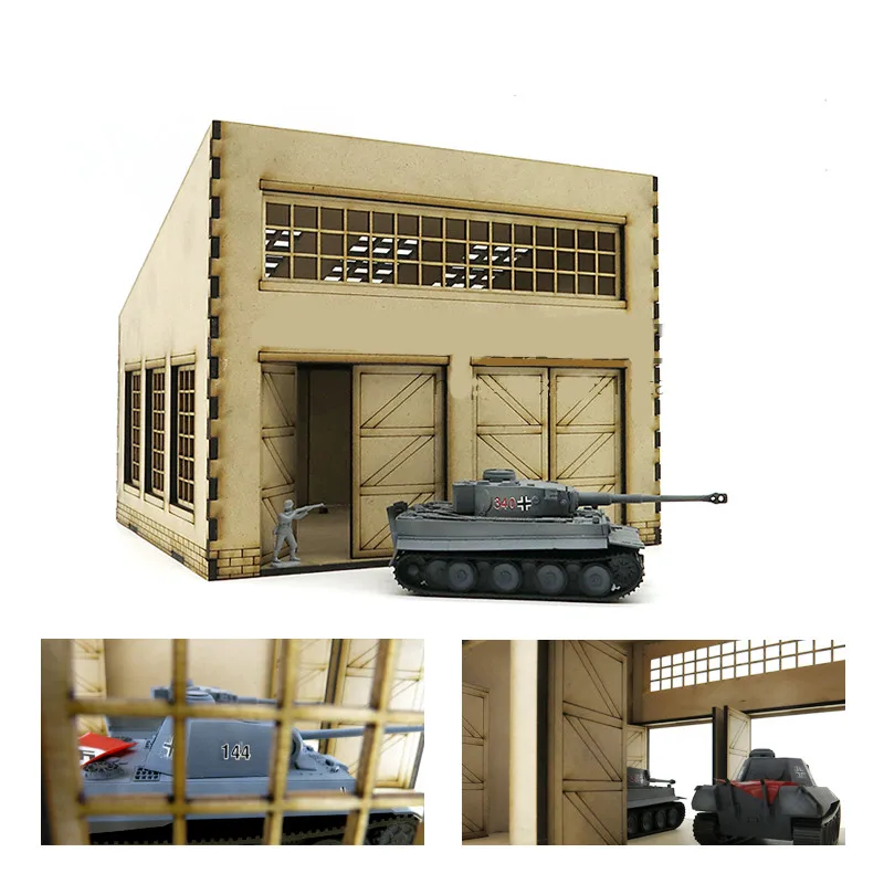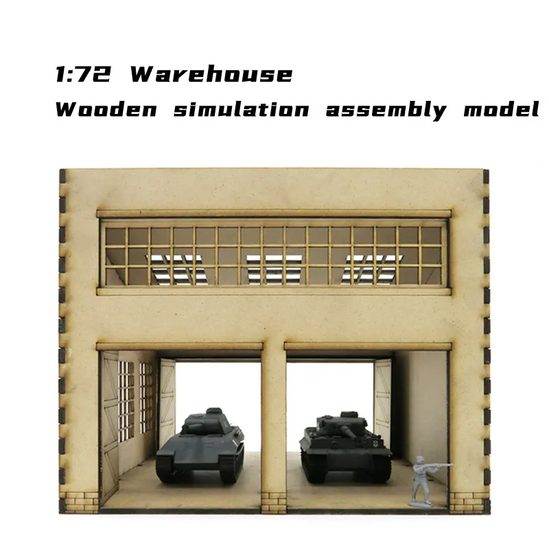 1/72 Tank Warehouse Model Factory Scene Wooden Assembly Model Military Base Miniature Buliding Kit