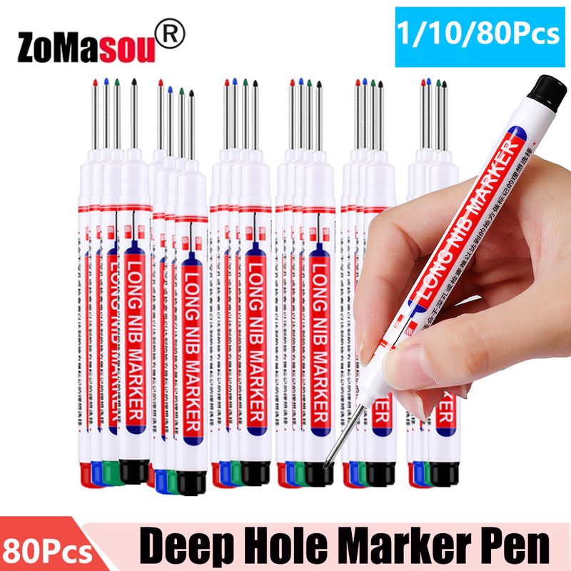 1/8/20/40/80Pcs Long Head Markers Bathroom Woodworking Decoration Multi-purpose Deep Hole Marker Pens