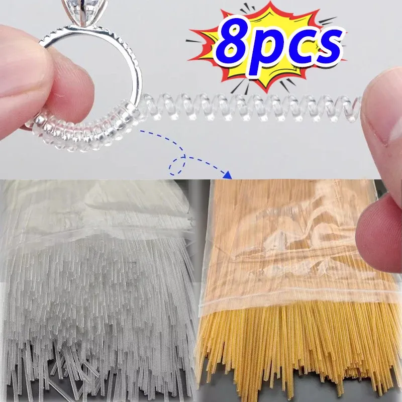 1/8pcs New Invisible Ring Size Reducer Tools Spiral Spring Based Rings Adjust Transparent Tightener Resizing Tools Jewelry Guard