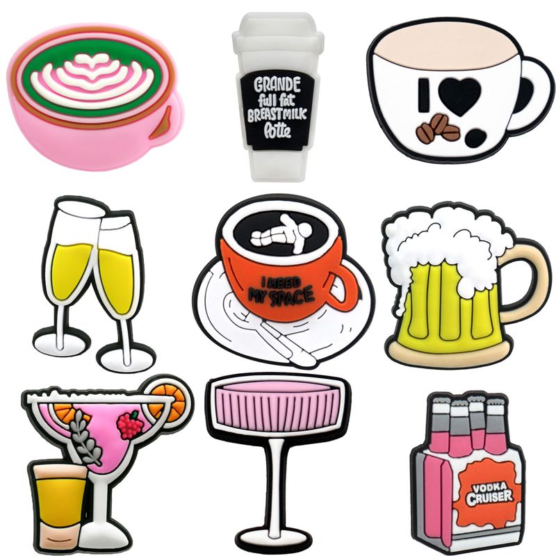 1/9pcs Heart Shaped Latte Coffee Cup Shoe Charms for Women Girl Cocktail Beer Champagne Glass Garden Sandals Pin Clog Jeans