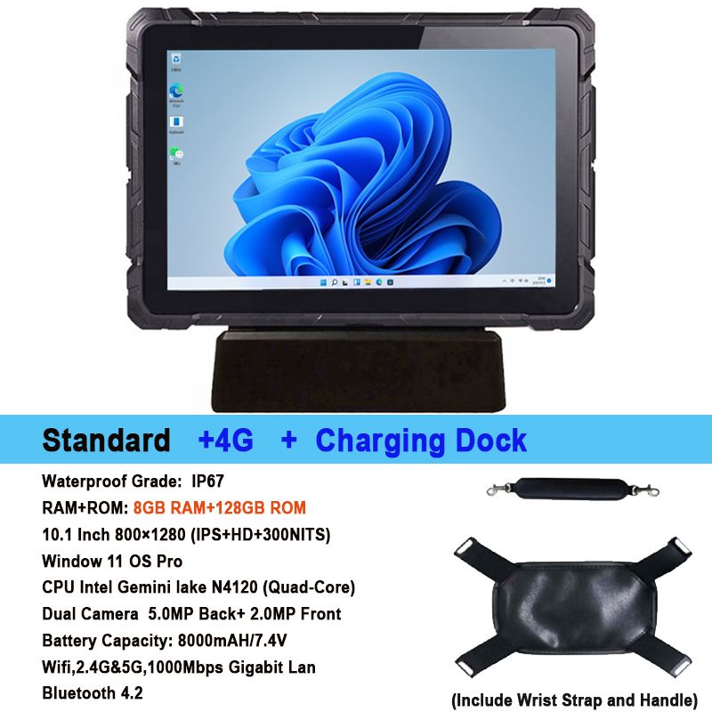 10.1 Inch Windows 11 Pro Rugged Tablet 4G LTE GPS 8GB RAM/128 GB ROM 10000mAh IP67 Handheld Waterproof Tablet
