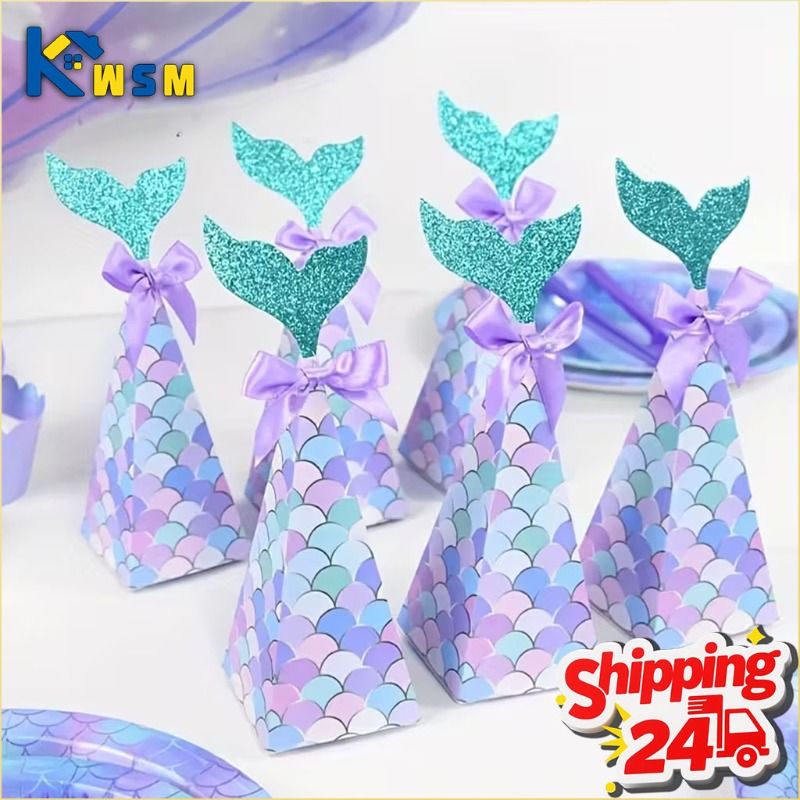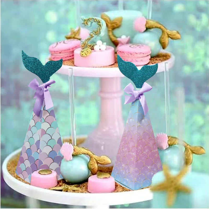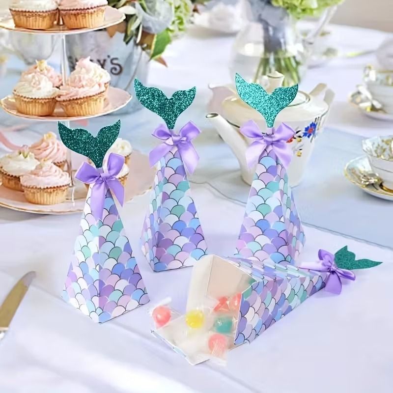 10-100PCS Mermaid Birthday Party Candy Box Paper Gift Box for Kids' Parties and Party Favors Ideal for Weddings and Birthdays