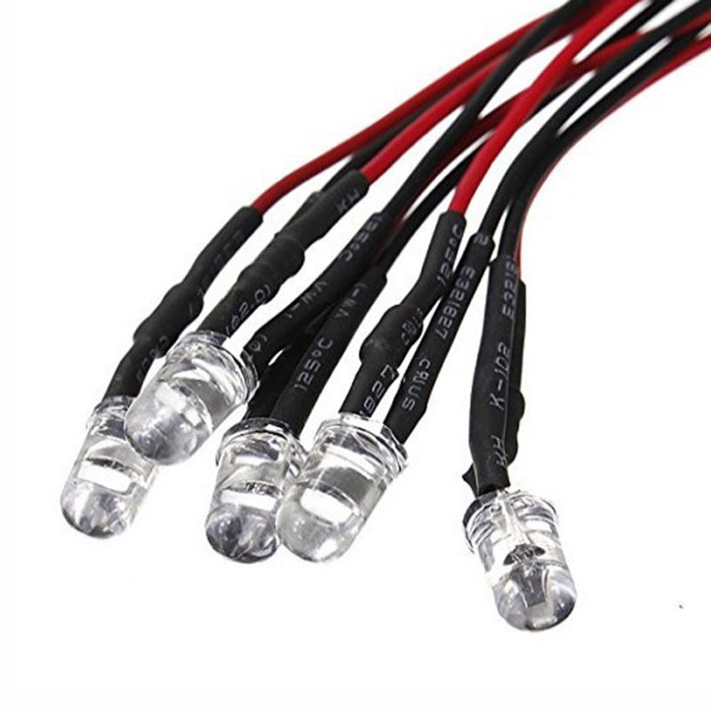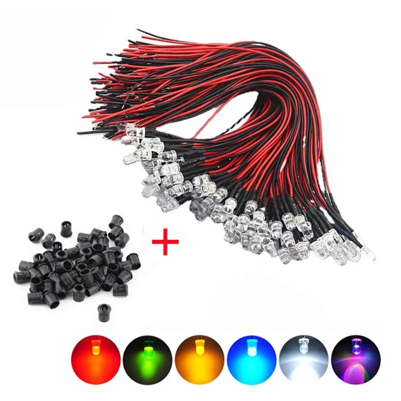 10 20 50 100PCS 3mm/5mm Red/Green/Blue/RGB 12V DC Round Pre-Wired Water Clear LED With Plastic Holder