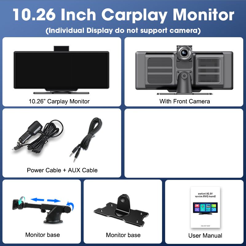 2.No Front Camera Version: No front camera, no DVR recording, supports wireless as well as wired Carplay and Android Auto.