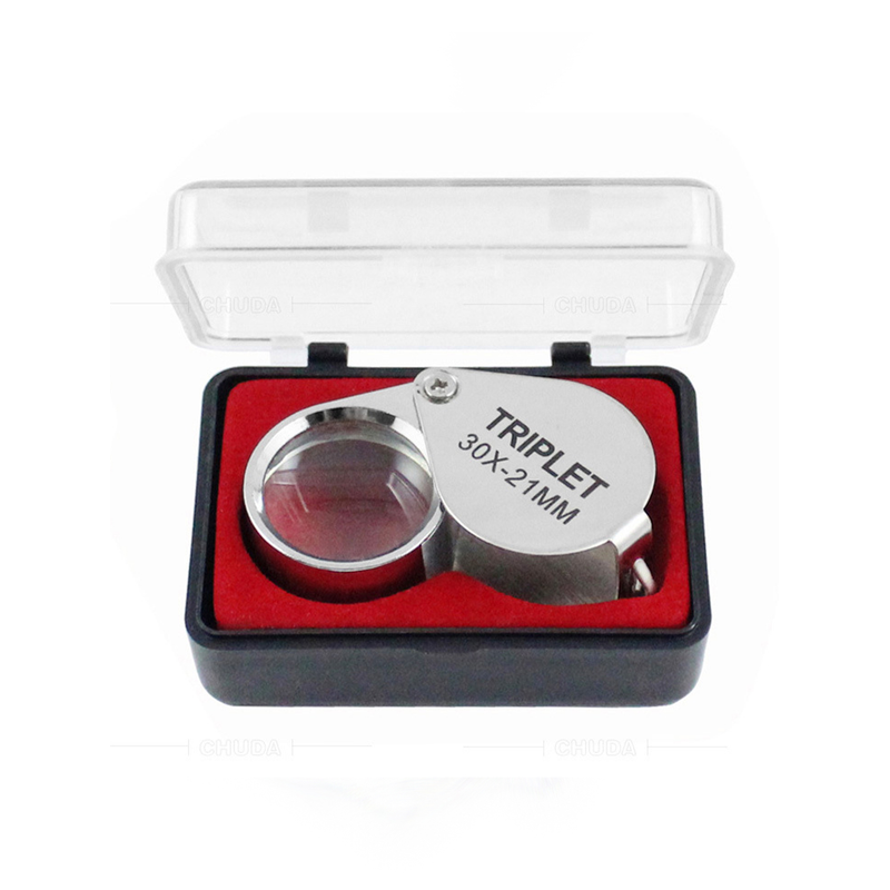 10-30X gold/silver boxed portable blinds folding three piece jewelry/labels/reading eye tools reading magnifying glass