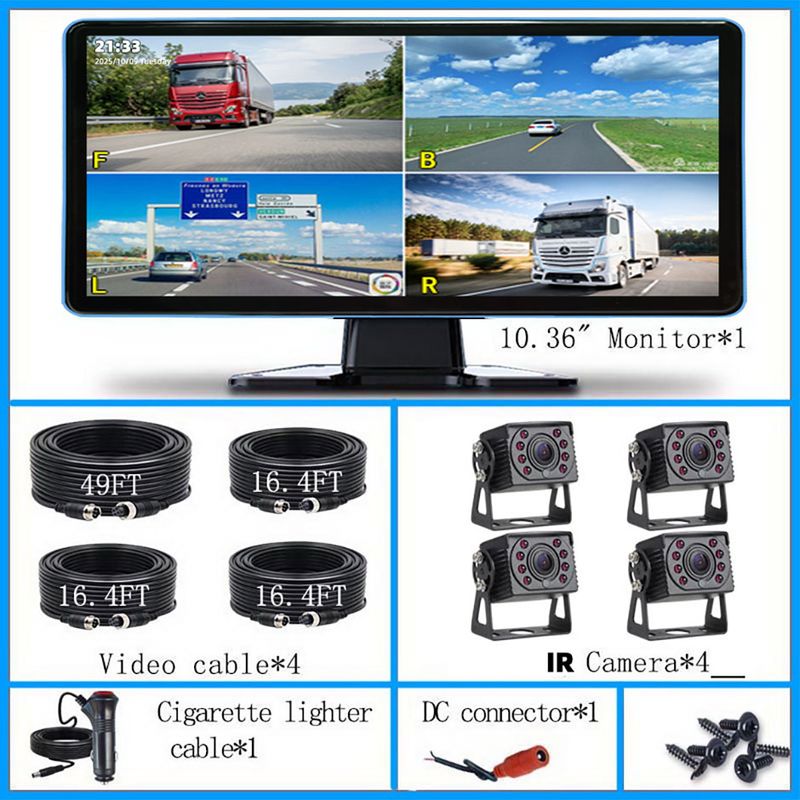 10.36" AHD 4 Channel Monitor Recording DVR 1080P Black Box Rear View Camera Truck Vehicle Touch Screen Support