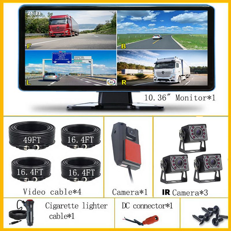 10.36" AHD 4 Channel Monitor Recording DVR 1080P Black Box Rear View Camera Truck Vehicle Touch Screen Support